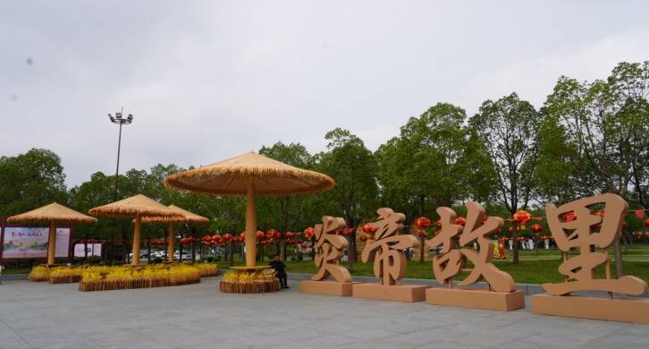 景区广场上的文化氛围同样浓厚。鹤发童颜、头顶火焰的“炎炎”卡通形象张开双臂,热情迎接四方来客;一块块展牌展板静静讲述炎帝神农的八大功绩与动人故事;造型各异的稻草打卡点、印着“炎”字的大红灯笼,既成靓丽风景,又添节日氛围;一排排木质连廊为游客提供遮风挡雨的休憩之所,细节处尽显贴心。